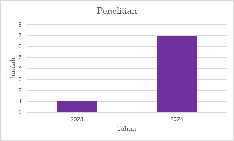 Peningkatan jumlah luaran HKI bidang penelitian tahun 2023 dan 2024 dapat dilihat pada Gambar dibawah ini: